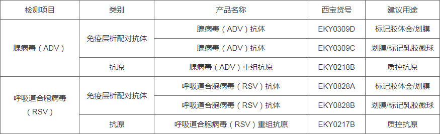 | 腺病毒(ADV) | 免疫層析配對抗體 | 腺病毒(ADV)抗體 | EKY0309D | 標記膠體金/劃膜 |