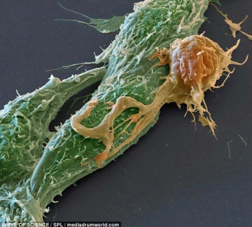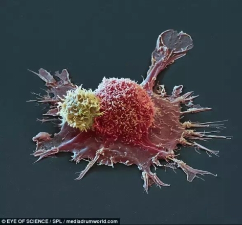 CAR-T細(xì)胞(黃色)正在攻擊乳腺癌細(xì)胞(粉色)