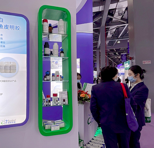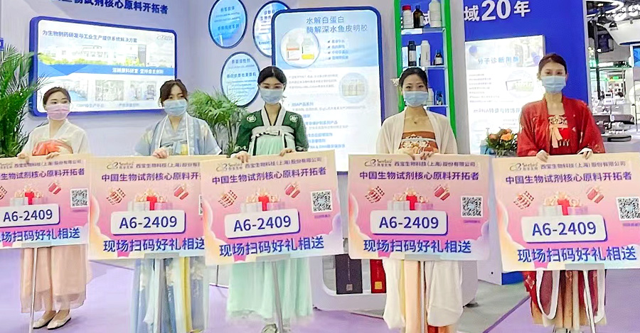 西寶生物自主研發(fā)的優(yōu)質(zhì)核心原料產(chǎn)品,廣泛應(yīng)用于體外診斷(生化、酶免/發(fā)光、分子診斷、膠體金層析、熒光層析等平臺)、生物制藥、疫苗研發(fā)生產(chǎn)及科研領(lǐng)域。此次展會,西寶生物重點展示了水解白蛋白、酶解深水皮魚明膠和分子酶系列等新品,引起了客戶的濃厚興趣。