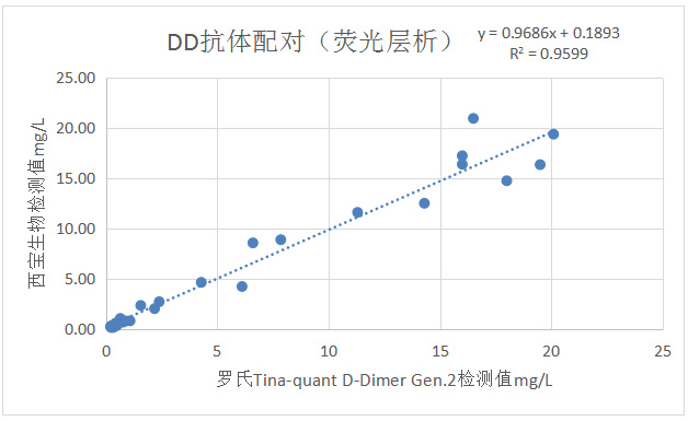 與羅氏Tina-quant D-Dimer Gen.2試劑檢測的臨床相關(guān)性R2>0.95。