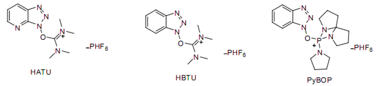 鎓鹽類的縮合劑活性較高,常用的脲鎓鹽如 HATU(縮合效果較好,但價格較貴),HBTU,和鏻鎓鹽如 PyBOP(活性高,一般在其他方法不反應(yīng)的條件下考慮),BOP。