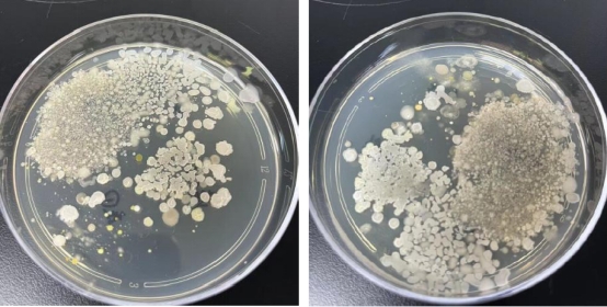 2、大豆酪蛋白板,KV500 的圈大,邊緣會有些菌帶,說明邊緣部分的抑制效果較弱。KV300 和PC300圈沒KV500 大,圈內(nèi)干凈無菌落,說明對接種液內(nèi)的細菌都有較好的抑制效果。