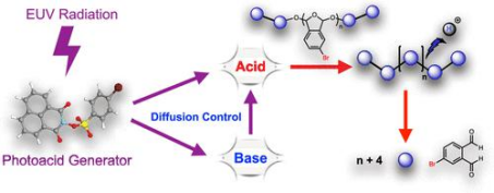 光酸的擴(kuò)散長(zhǎng)度直接決定了光刻膠的性能及一些重要參數(shù),如曝光能量、能量窗口、邊緣粗糙度、圖形形貌以及掩模版誤差增強(qiáng)因子等。