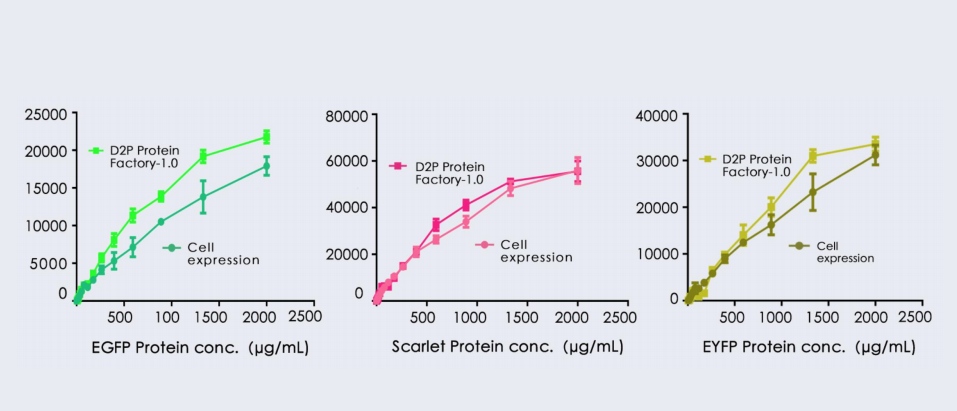 獨(dú)立開(kāi)發(fā)的DNA到蛋白質(zhì)技術(shù)可以生產(chǎn)高通量、低成本、高活性的蛋白質(zhì)。目前的蛋白質(zhì)工廠1.0產(chǎn)品的成本效益是市場(chǎng)上其他無(wú)細(xì)胞蛋白質(zhì)合成產(chǎn)品的1000-600000倍。目標(biāo)是逐步取代細(xì)胞表達(dá)蛋白質(zhì)系統(tǒng),實(shí)現(xiàn)蛋白質(zhì)生產(chǎn)的真正工業(yè)化。
