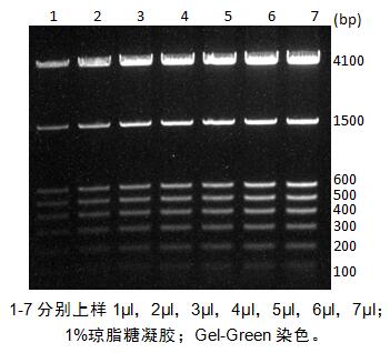 2、如本產(chǎn)品電泳時出現(xiàn)抹帶、條帶不清晰或彎曲等非理想情況,可嘗試稀釋后上樣。