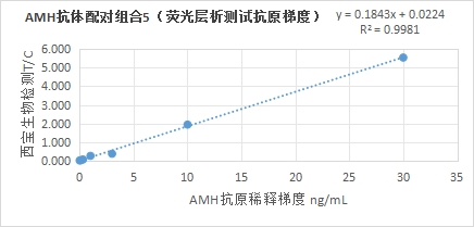4.3熒光免疫層析平臺抗體配對組合5:AMH抗體(貨號:EKY0328H)標(biāo)記熒光微球+AMH抗體(貨號:EKY0328I)劃膜